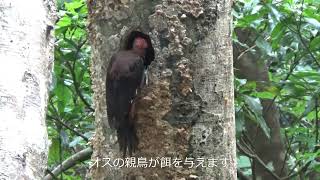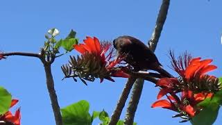 県花デイゴの蜜を吸う県鳥ノグチゲラ Trim